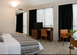 This fully furnished and modernly decorated room is a great choice for couples and business travelers. It has everything you need for a perfect vacation and even more. In this room you have everything you need.It is located near the city center and beaches. Room with partial seaview with double or two single beds.