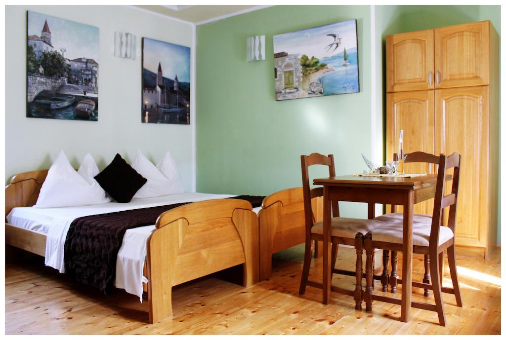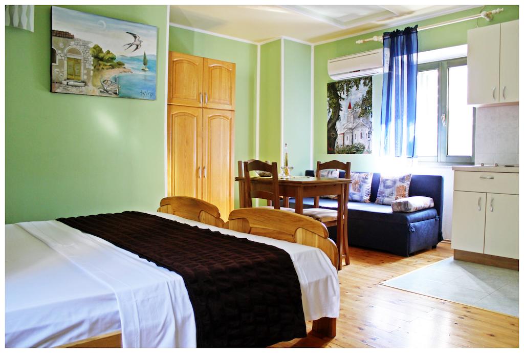 Tri studio apartmana smještena su u starom gradu Trogiru. Svaki apartman nalazi se na svakom katu te su pogodni za parove i manje grupe za 3 osobe. Apartmani Mirkec nalaze se u starom gradu Trogiru na rivi. Kuća se sastoji od 3 apartmana koji su renovirani prije nekoliko godina. Opremljeni su krevetom za 2 osobe i jednim pomoćnim ležajem za 1 osobu. U ovim apartmanima imate sve što vam je potrebno. Nalaze se u samom centru grada nekoliko minuta udaljeni od barova, restorana, plaža, noćnih klubova.U prizemlju možete uživati u doručku uključenom u cijenu apartmana i drugim delicijama (koje nisu uključene) poznate pizzerije Mirkec.