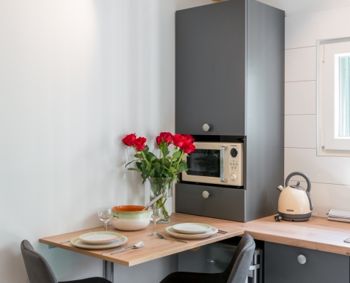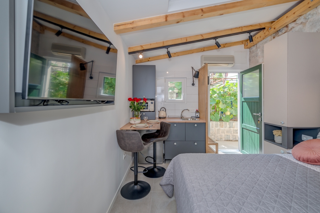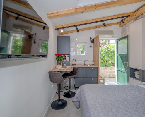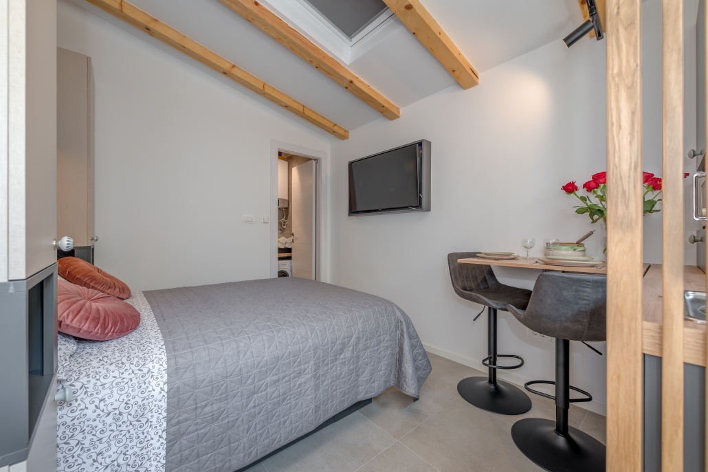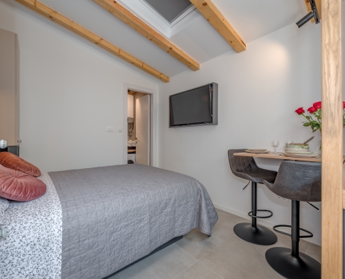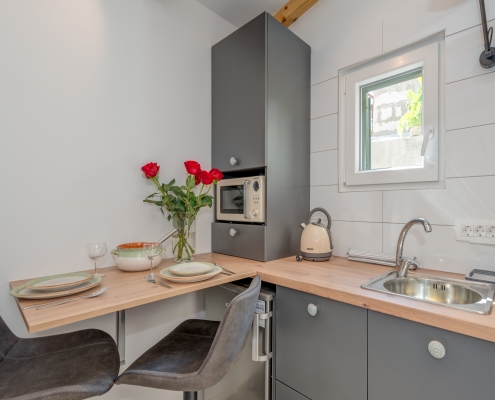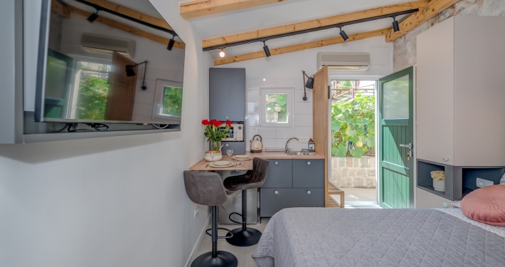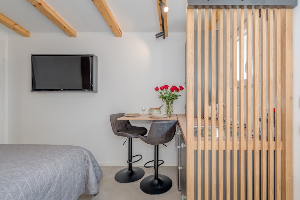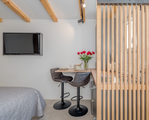 Modernly design and comfortable room in the city center. Equipped with functional, small kitchenaid and counter table, suitable for everyday dining. It is perfectly suitable to accommodate two people.