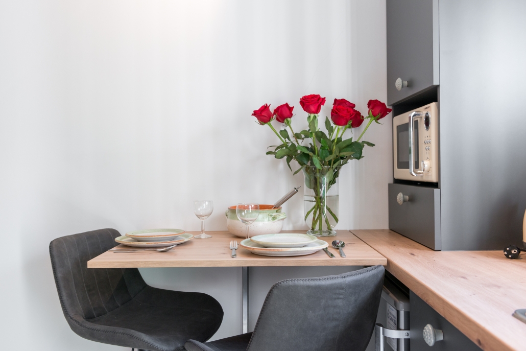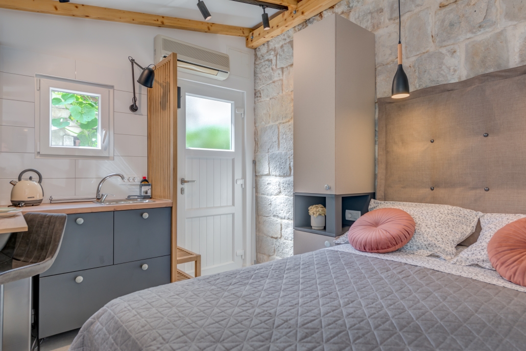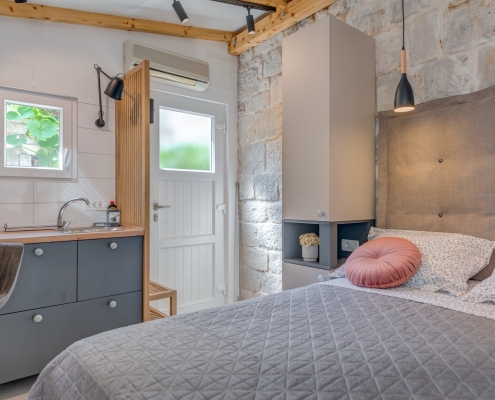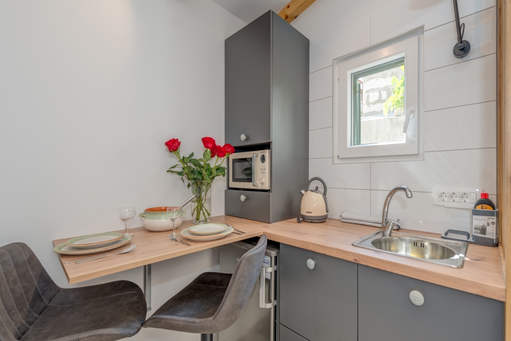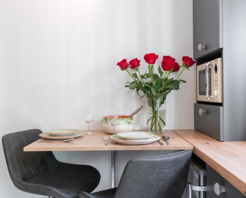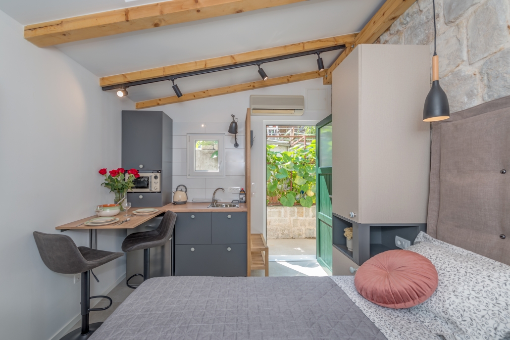 Modernly design and comfortable room in the city center. Equipped with functional, small kitchenaid and counter table, suitable for everyday dining. It is perfectly suitable to accommodate two people.