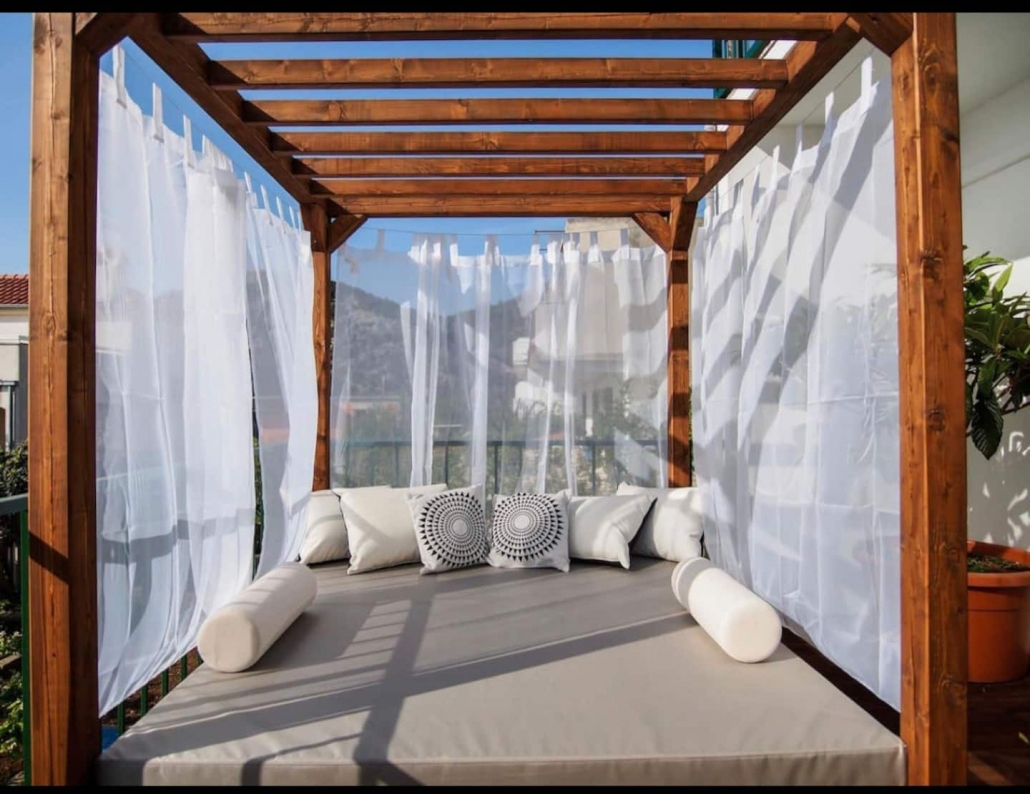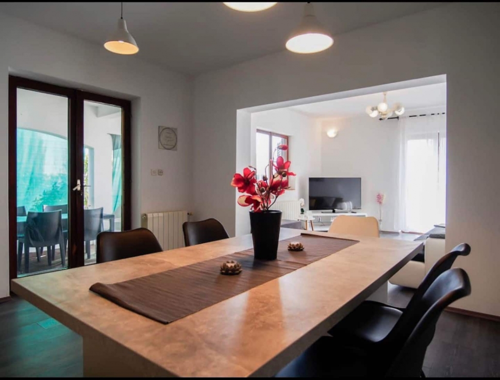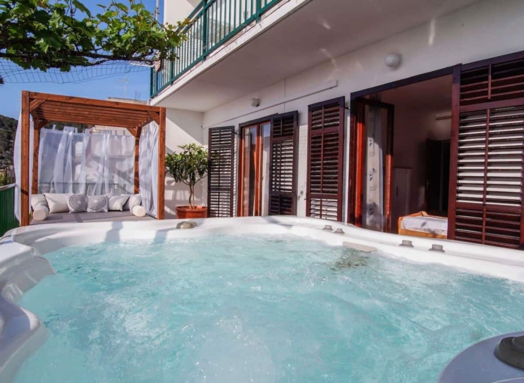 Nice and cozy holiday home with jacuzzi suitable for 10 people. Consisted of 5 bedrooms with seven beds and five bathrooms, a living and dining room, garden with jacuzzi with outdoor furniture to chill and relax. House is equipped with everything and much more for a perfect vacation close to the center of Hvar.